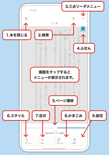 ※上記はテキスト作品の操作方法となります。マンガ作品については一部異なります。